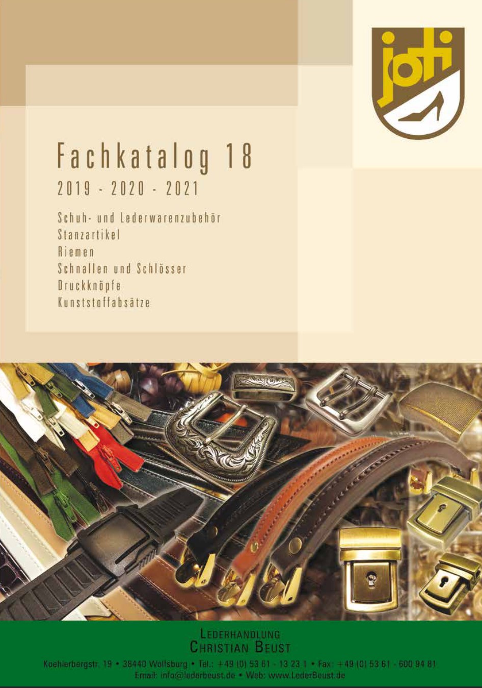 Wir sind der Fachhandel für Leder, Orthopädie-, und Schuhbedarf. Das Joti-Sortiment umfasst Schuh- und Lederwarenzubehör, Stanzartikel, Riemen, Schnallen und Schlösser, Druckknöpfe und Kunststoffabsätze.
